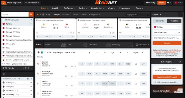 - BizBet platformuna kaydolun veya mevcut hesabınıza giriş yapın.